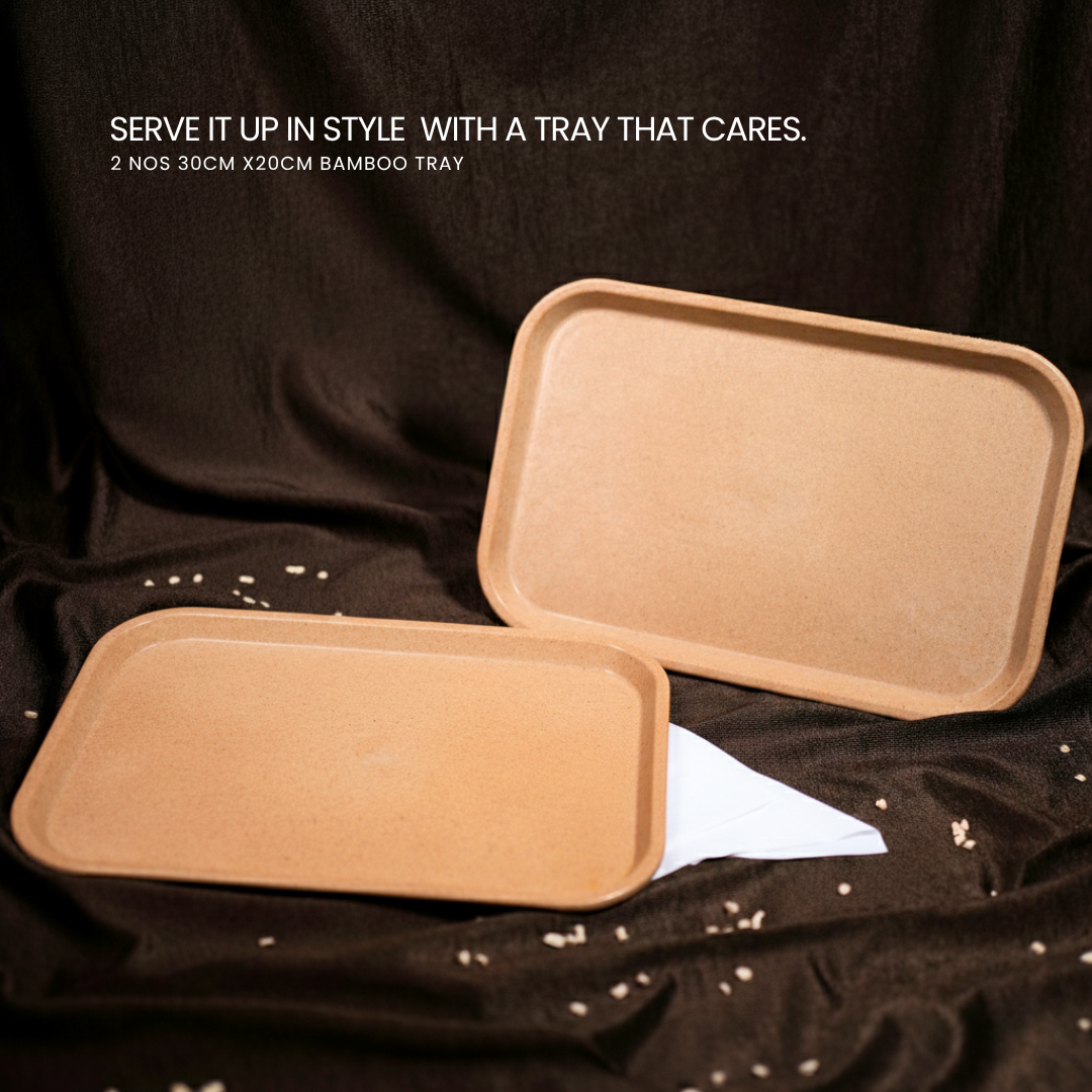 Eco-Friendly Bamboo Tray Set of 2 for Serving (30x20cm)