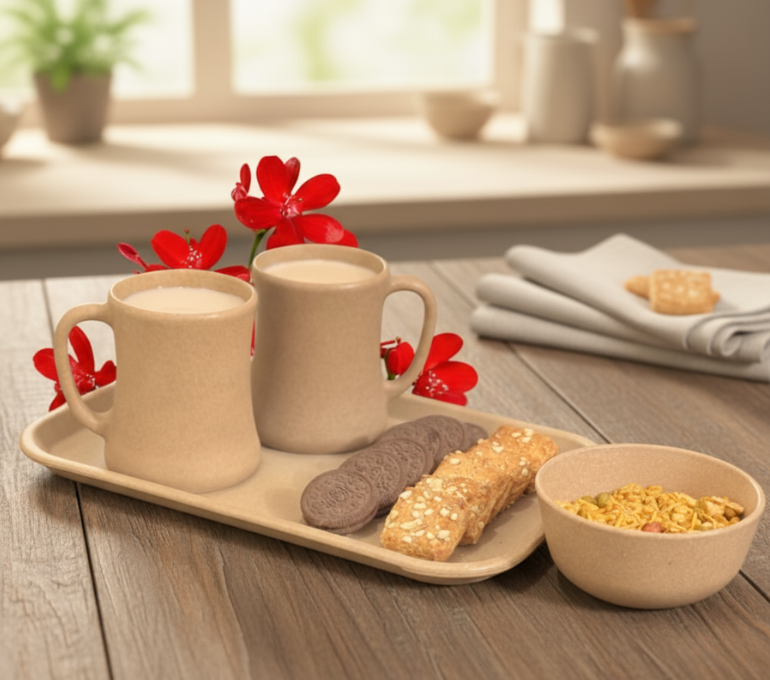 - Multipurpose Serving Tray Set – Ideal as a tea tray for serving, breakfast tray, or snack tray, perfect for homes, offices, cafes, and restaurants.