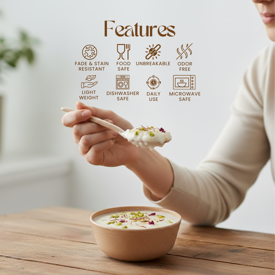 - Unbreakable & Lightweight – Made from a premium biocomposite blend of bamboo and rice husk, these durable, reusable, and lightweight bowls ensure a hassle-free, long-lasting dining experience.