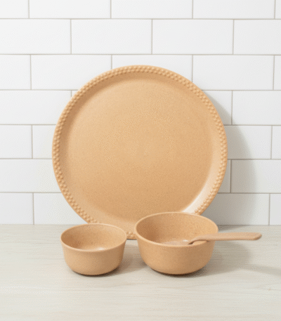 Pacing Grass 4-Piece Bamboo Dinner Set (1 Plate + 2 Bowls 300ml, 180ml + 1 Spoon)