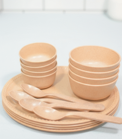 30pc Eco-Friendly Bamboo Dinner Set – Plates, Bowls, Glasses