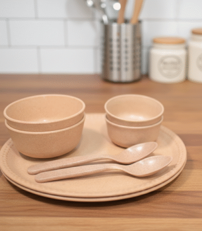 42pc Eco-Friendly Bamboo Dinner Set – Plates, Bowls, Glasses & Spoons