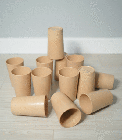 Microwave Safe Bamboo Drinkware Set: 4 Glasses & 6 Kullads. Eco.