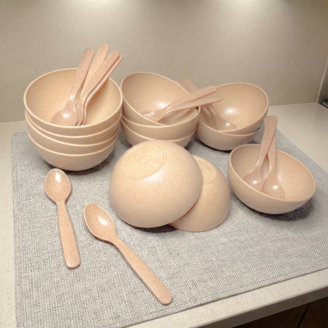 10 Bamboo Soup Bowls & Spoons 750ml Microwave Safe