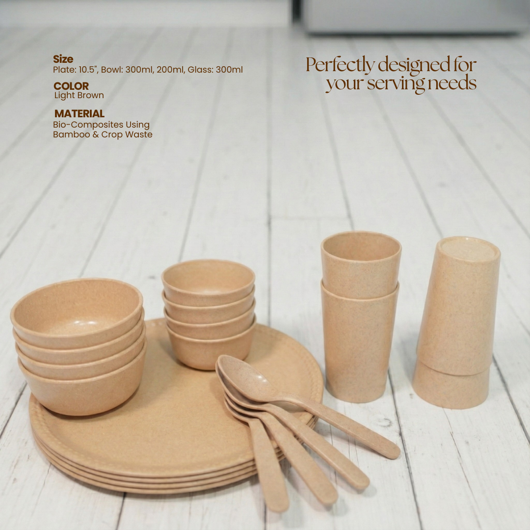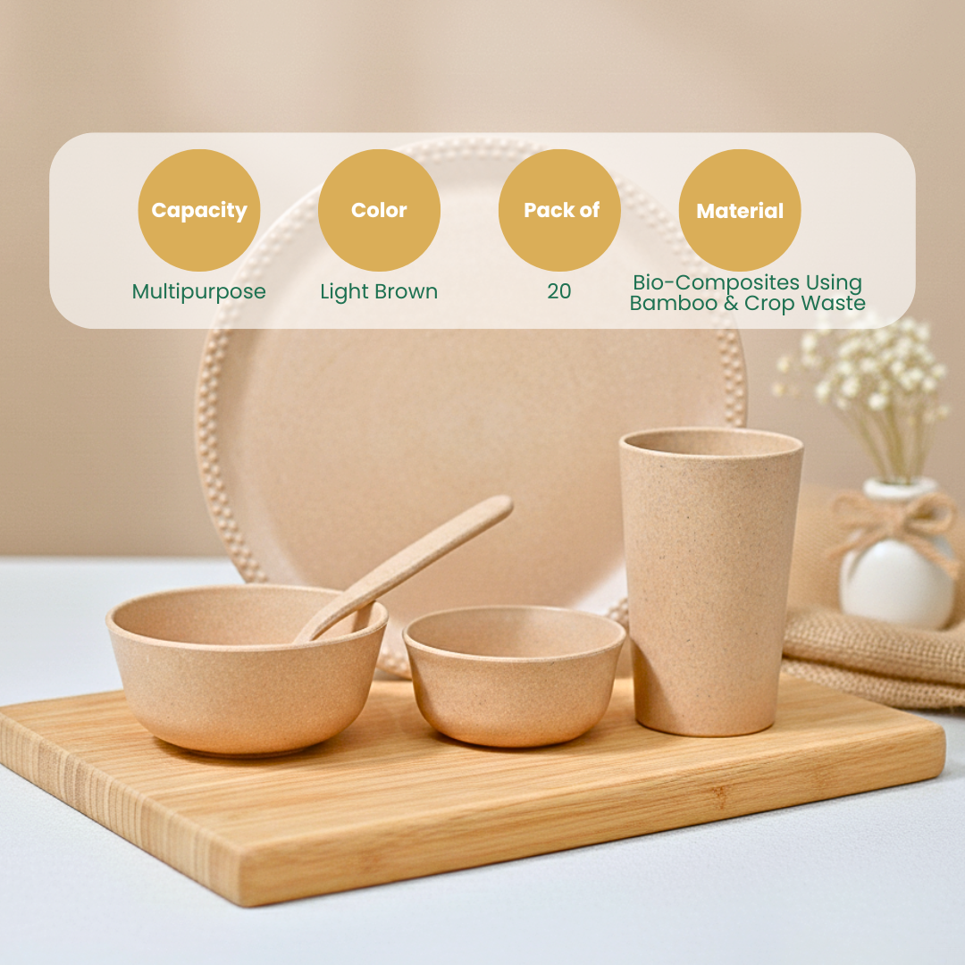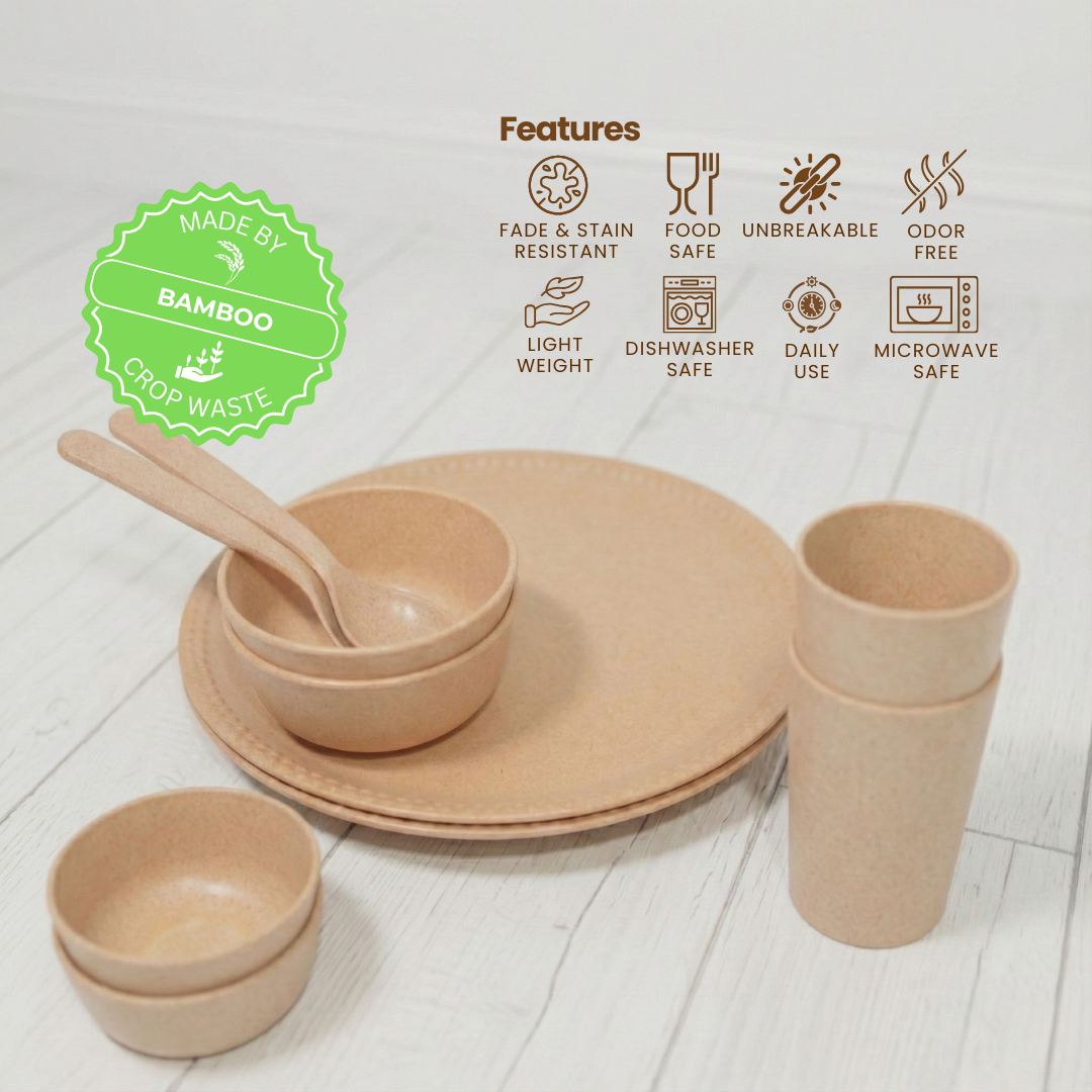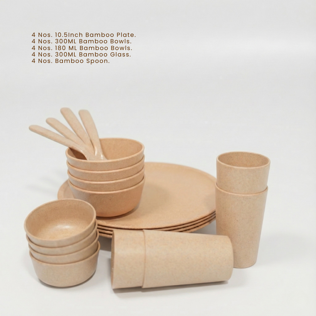 | Included Components | 4 Nos. 10.5Inch Bamboo Plate. 4 Nos. 300ML Bamboo Bowls. 4 Nos. 180 ML Bamboo Bowls. 4 Nos. 300ML Bamboo Glass. 4 Nos. Bamboo Spoon. |
