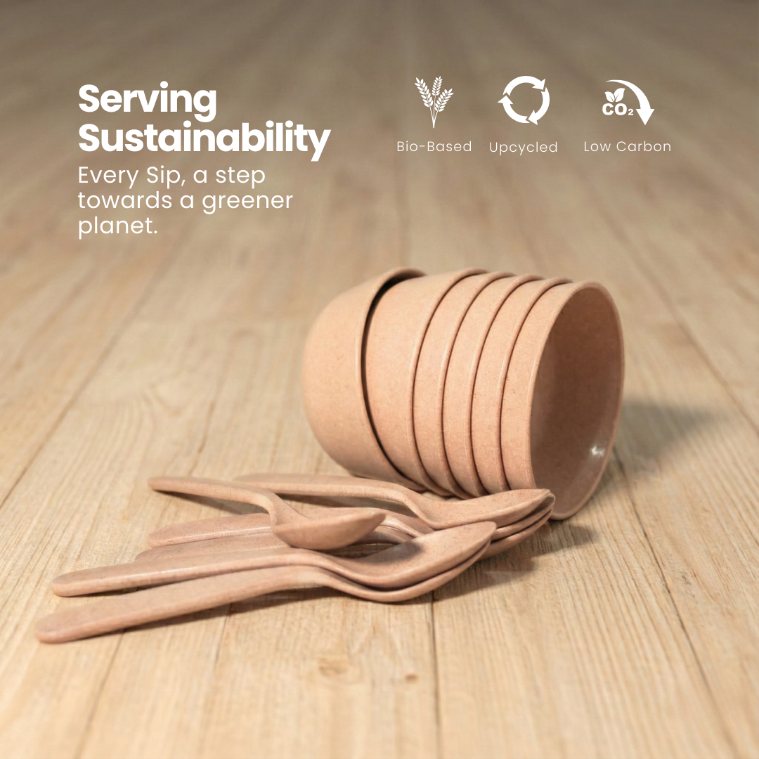 Bamboo Tea Set: 6 Kullads & Tray, 160ml, Microwave Safe