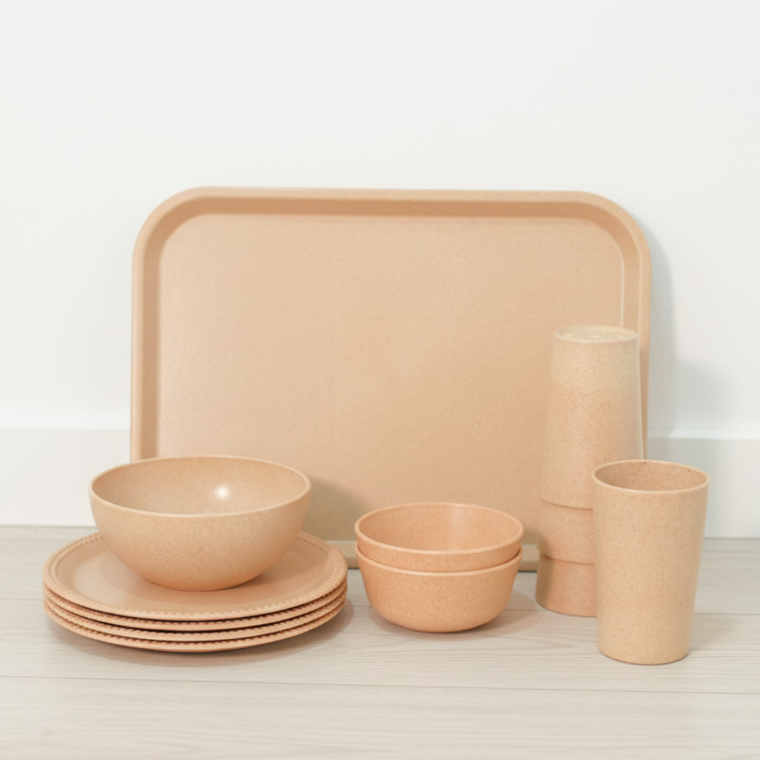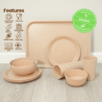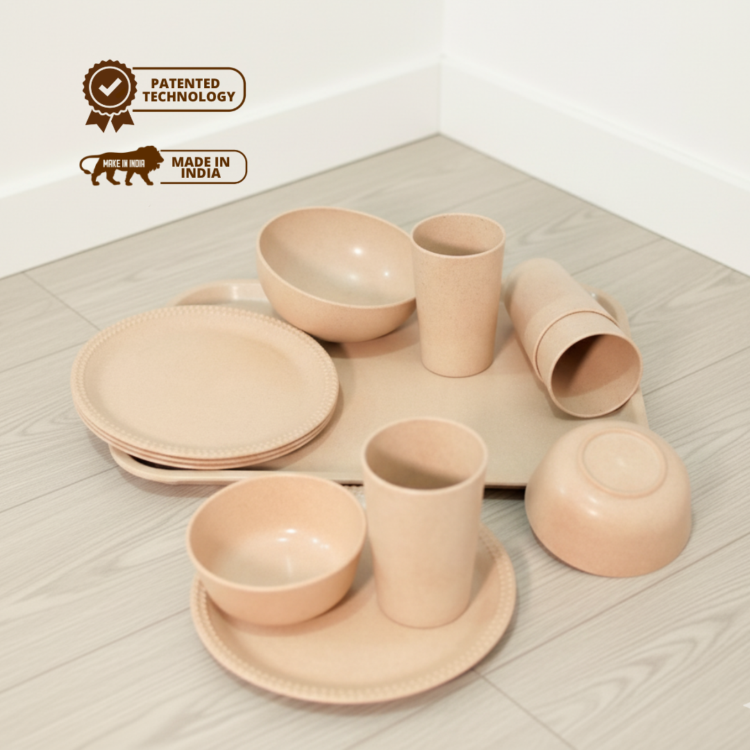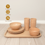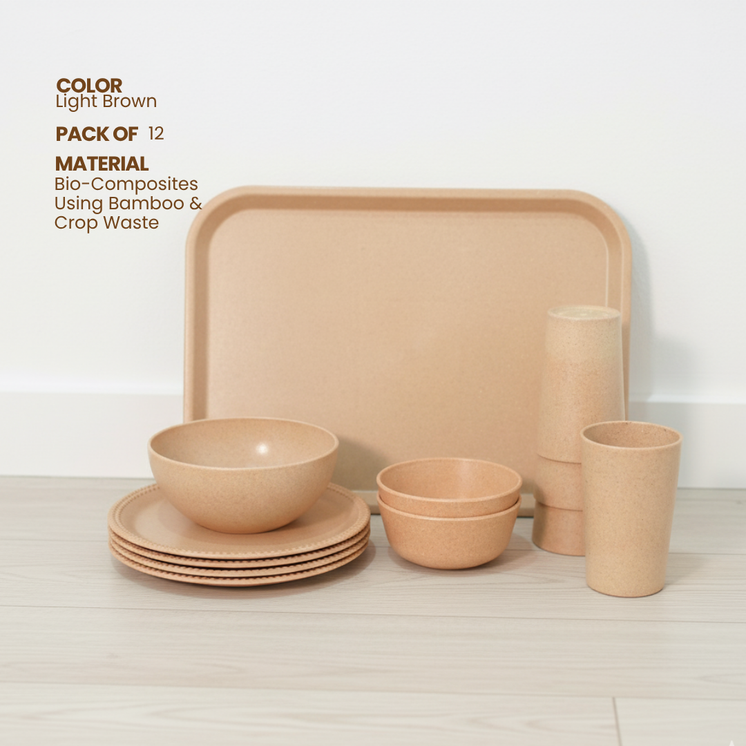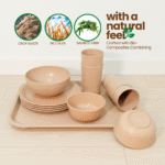 • Premium & Durable Material – Made from Bamboo, Rice Husk, and Coffee Husk, this lightweight, eco-friendly, and break-resistant crockery set is ideal for daily use.