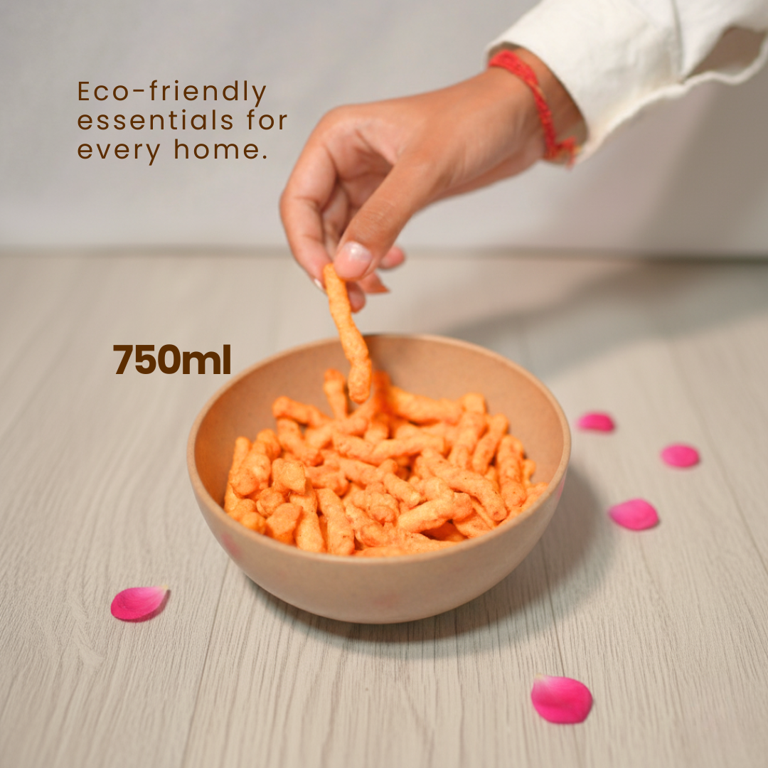Set of 4 Large Eco-Friendly Bamboo Dinner Bowls, 750ml