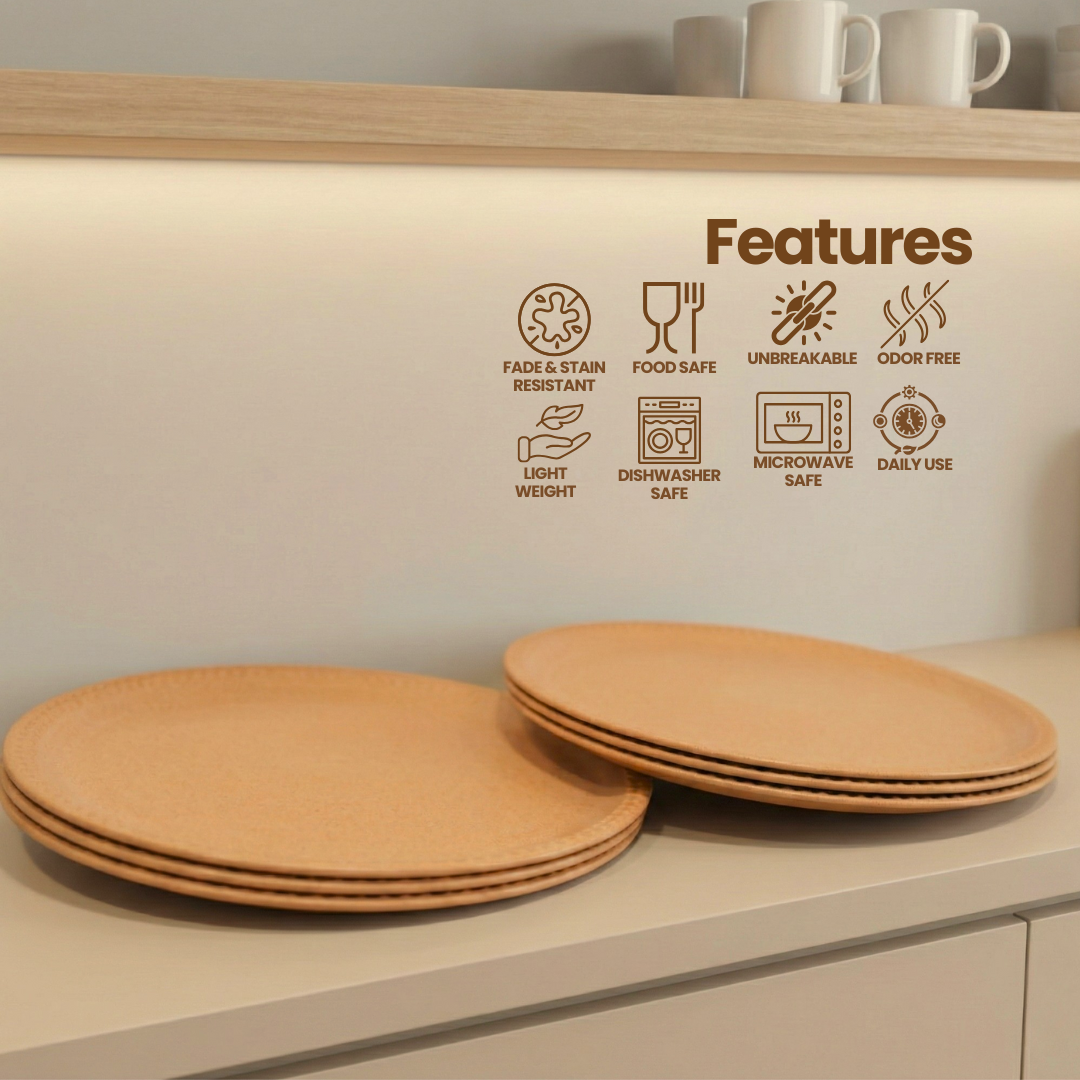 Set of 6 Bamboo Dinner Plates 10.5 Inch Microwave Safe