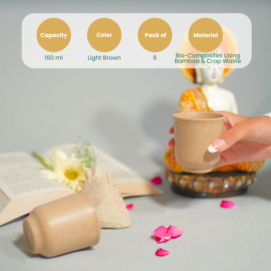 Set of 6 Eco-Friendly Bamboo Chai Kullads, 160ml – Gifts