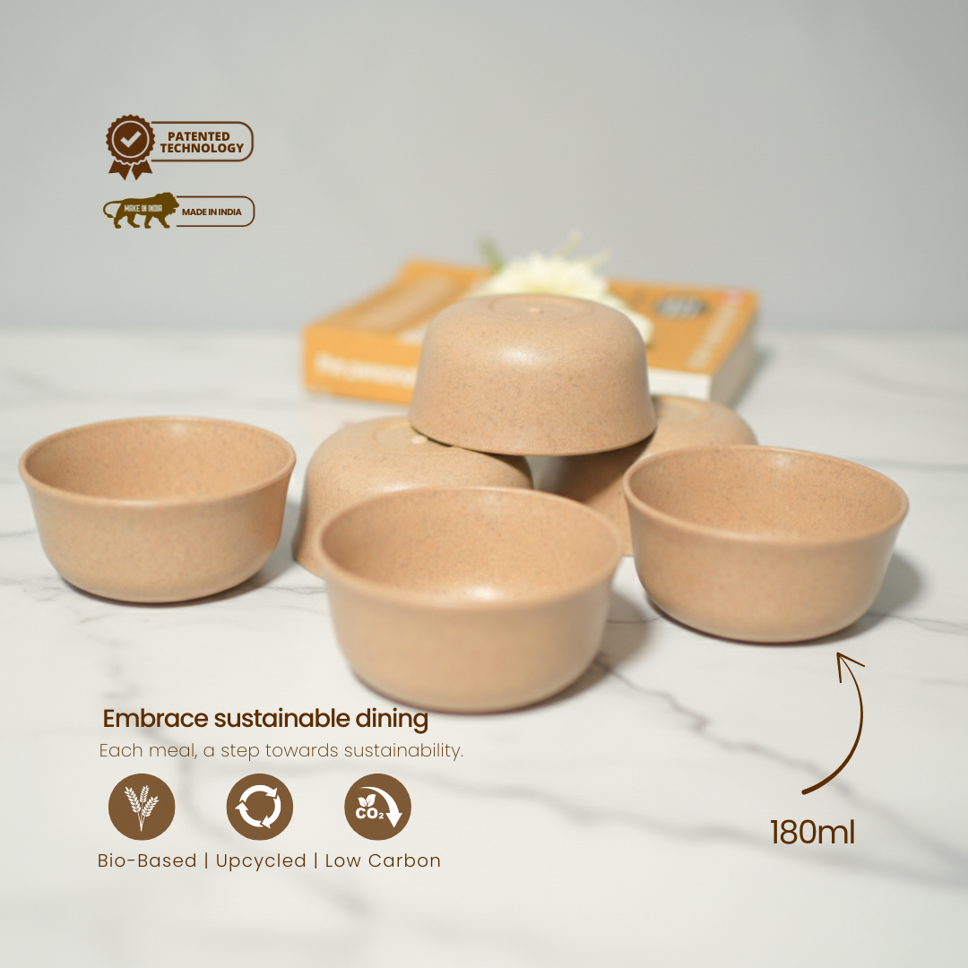 Set of 6 Eco-Friendly Bamboo Multipurpose Bowls, 200ml